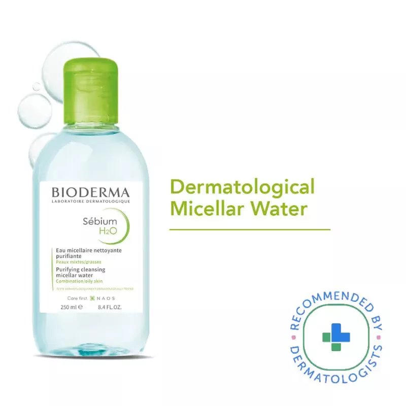 Bioderma Sebium H2O Micelle Solution is a purifying cleansing make-up removing micellar water for combination or oily skin that mimics the natural composition of the skin for perfect make-up removal and total respect for even the most sensitive skin.